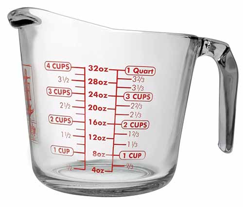 Easy to read markings are a must for liquid measures, like this four-cup capacity glass cup with a curved spout from Anchor Hocking. It’s available from Sur la Table.