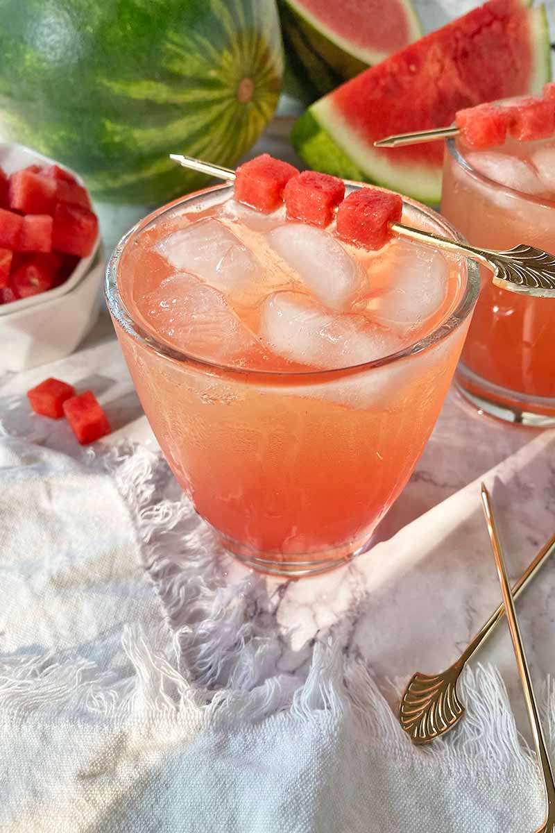 And maybe garnish the glass with a watermelon wedge or cubes on a cocktail pick for just a little decorative flair, but only if you really want to take the time to apply a finishing touch.