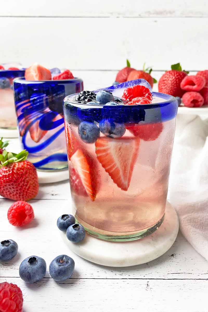 The juicy flavors of the strawberries, raspberries, blackberries, and blueberries will all come through in as little as two hours of infusing time, though you can infuse them for up to eight hours.