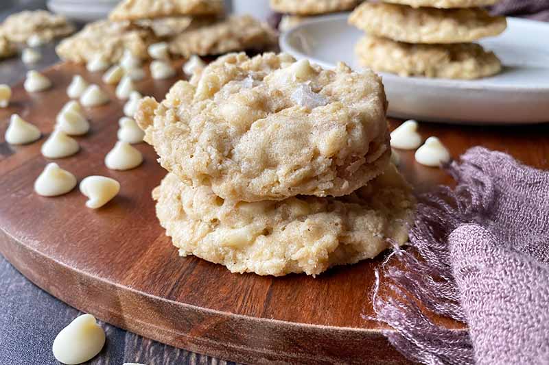 Another twist on a classic, semi-sweet chocolate chips are swapped for white chocolate with no other add-ins required in these oatmeal cookies, with a sprinkling of flaky sea salt on top of each one for a little savory-sweet combo that hits the spot in the best possible way.